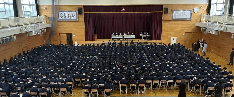第一体育館において前期生徒総会が行われました。R7生徒会活動・R7生徒会決算の報告があり、さらにR8生徒会活動計画・R8生徒会予算が承認されました。また、各委員会の年間活動計画も報告されました。