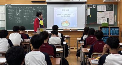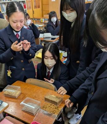 三内丸山遺跡センターより小笠原副所長、八代主事、太田主事をお迎えし、「縄文“体感”世界遺産講座」が開催されました。講座では、世界遺産「北海道・北東北の縄文遺跡群」の概要や、三内丸山遺跡の特徴・魅力について、専門的かつわかりやすい解説が行われました。生徒たちは、縄文時代の人々の暮らしや文化に触れながら、実際に三内丸山遺跡から出土した土器などの資料を通して、当時の生活様式や精神文化への理解を深めました。