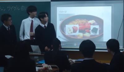 スライドにまとめた内容をグループごとにクラス内で発表しました。発表後は投票でクラス代表を決定しました。各クラスの代表グループは2月20日に行われる学年発表に臨みます。詳細は「■活動風景(動画)★クラス発表編」から見ることができます。